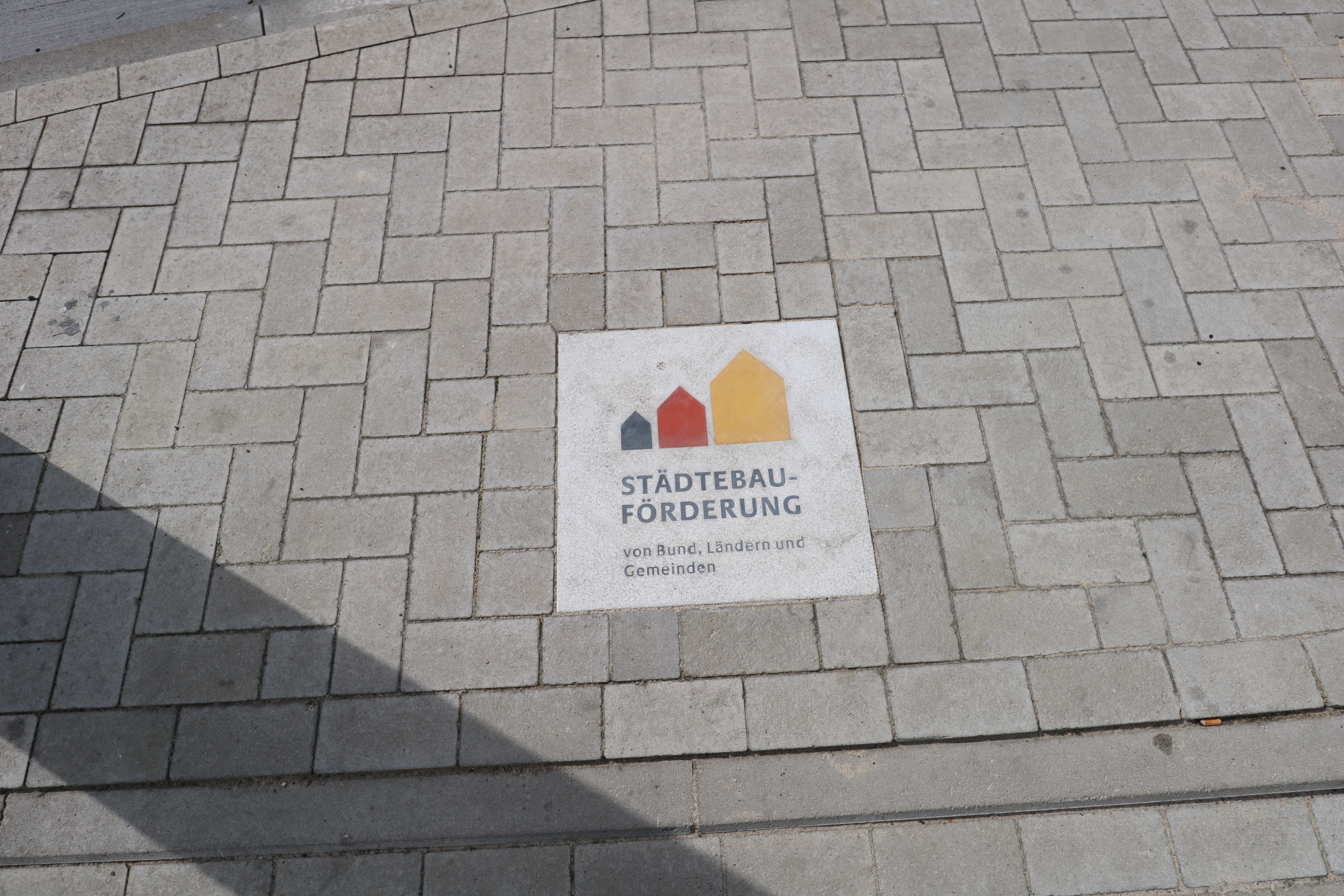 Die Bodenplatte mit Hinweis auf die Mittel der Städtebauförderung